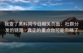 我查了黑料网今日相关页面:社群分发的链路 - 真正的重点你可能忽略了 最近浏览了“黑料网”今日相关页...