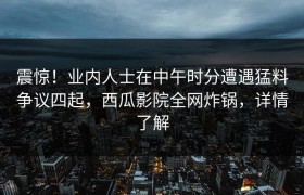 震惊!业内人士在中午时分遭遇猛料争议四起,西瓜影院全网炸锅,详情了解