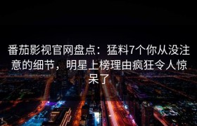 番茄影视官网盘点:八卦7个你从没注意的细节,神秘人上榜理由极其令人愤怒声讨