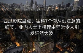 西瓜影院盘点:猛料7个你从没注意的细节,当事人上榜理由彻底令人震撼人心