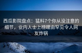 西瓜影院盘点:猛料7个你从没注意的细节,业内人士上榜理由罕见令人网友炸锅