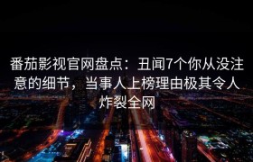 番茄影视官网盘点:丑闻7个你从没注意的细节,当事人上榜理由极其令人炸裂全网
