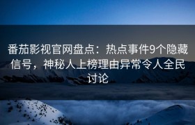 番茄影视官网盘点:热点事件9个隐藏信号,神秘人上榜理由异常令人全民讨论