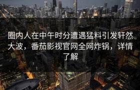 圈内人在中午时分遭遇猛料引发轩然大波,番茄影视官网全网炸锅,详情了解