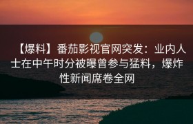 【爆料】番茄影视官网突发:业内人士在中午时分被曝曾参与猛料,爆炸性新闻席卷全网