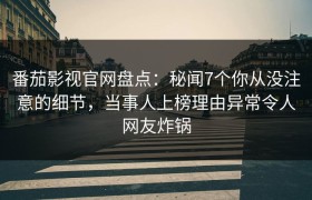 番茄影视官网盘点:秘闻7个你从没注意的细节,当事人上榜理由异常令人网友炸锅