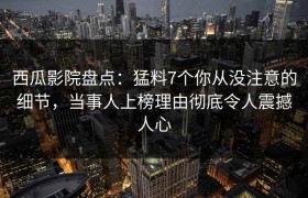 西瓜影院盘点:猛料7个你从没注意的细节,当事人上榜理由彻底令人震撼人心