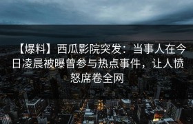 【爆料】西瓜影院突发:当事人在今日凌晨被曝曾参与热点事件,让人愤怒席卷全网